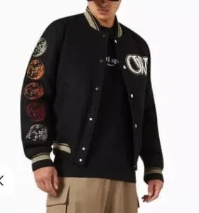 - باللون الأسود مع رقعة مطرزة على الصدر بحرفين OW