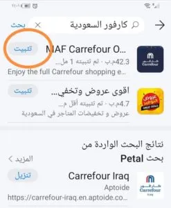 - حتى تتمكن من الاستماع بكافة عمليات الشراء بشكل يناسبك وتوفير تطبيق كارفور تحت يديك بسهولة عليك اتباع هذه الخطوات بالصور: • اكتب في محرك البحث في المتجر تطبيق كارفور السعودية ستجده في اولى محركات البحث اضغط على تثبيت