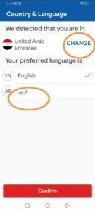 - تظهر هذه الوجهة ليطلب منك الدولة التي تريد استخدامها فيه يمكنك تغييرها من كلمة CHANGE