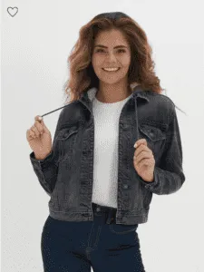 - جاكت دنيم بقبعه قصير يأتي بملبس وشكل ناعم