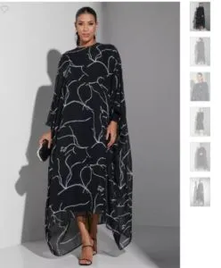 - العباءة مصنوعة بالكامل من قماش البوليستر الخفيف والشفاف بنقشة مزخرفة كلمسة فريدة من المصمم، تتميز الجلابية بتصميم بسيط برقبة مستقيمة حيث تعد مثالية المحجباتـ تأتى الجلابية باكمام فضفاضة واسعة بتصميم وطواط واسورة في نهاية الكم ليضيق علي معصمك. كما نقدم العباءة التي نرشحها اليك بسعر 251 ريال سعودي فضلا عن تخفيضات المتجر المتميزة.
