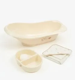 - عبارة عن حوض للاستحمام ومنشفة ولفة واسفنجة