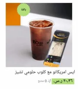 - تشيز مع كوب من أيس امريكانو بحجم متوسط بسعر 21 ريال سعودي.