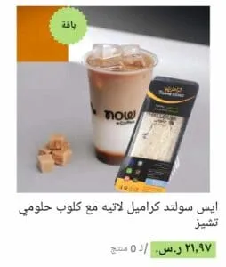 - كراميل لاتيه مثلج اللذيذ مقدمة من متجر نينجا بسعر 22 ريال سعودي.