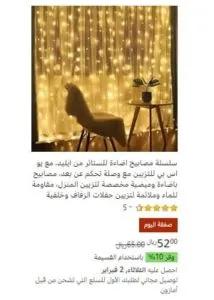 هنا في الستارة الخاصة بالإضاءة الليد تجد أن العرض هذا لمدة زمنية معينة سينتهي في الوقت المحاط بدائرة. حصل هذا العرض على تقدير 5 نجوم وهو تقدير رائع بالضغط عليها تطالع المزيد من مراجعات العملاء وهذا أمر مهم جدًا في تقدير المنتج. موضح لك تقدير المنتج ونسبة الخصم والسعر الذي وقع عليه الخصم والسعر قبل الخصم ونسبة خصم أمازون على هذا المنتج كما هو واضح في الصورة .