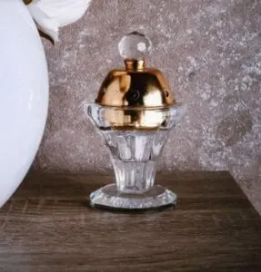 - مبخرة كريستال، بتصميم أنيق وقاعدة ذهبية