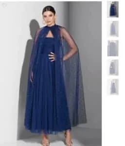 - اذا كنتي تبحثين عن فساتين سهرة تركية ذو تصميم هادئ وبسيط يمنحك المزيد من الثقة بالنفس في الحفلة الليلية اذا ننصحك بالحصول علي فساتين سهرة ناعمة طويلة ثردز من أجوني ذو الشاح الراقي من التل بتصميم أكمام كيب ومطرز بحبات لامعة صغيرة كلمسة ساحرة علي التصميم الراقي البسيط، اشتريه الان من نمشي واحصلي عليه بسعر 679 ر.س.