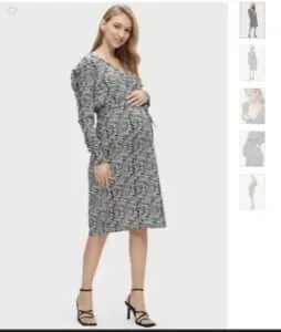 - هذا الموديل يعد المثالي وخيارك الأفضل للإطلالات الخاصة، حيث يساعد السيدة الحامل هكذا علي الحركة بكل سهولة بفضل تصميمه المريح من خامات خفيفة، بالإضافة الي منحك مظهر أنيق حيث يتمتع بنقشة عصرية وياقة حرف v فضلا عن الاكمام المنفوشة، يقدم الدريس من ماركة ماما ليشز في موقع namshi الكتروني بسعر 170 ريال.