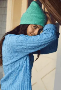 - كاب مرن مجعد طري دافئ ومنقوش بخطوط بسيطة