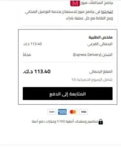 • بعدها يؤكد العميل الشراء من المتجر عبر اختيار وسيلة دفع تناسبه ويستخدم أكواد الخصم لتخفيض السعر.