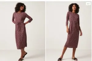 الصيفية ذات النقشات الخلابة التي تمنحك المزيد من الحيوية في الإطلالات النهارية، ننصحك بموديل ميدي الجديد ذو الأكمام التلت أربع ورباط يلتف علي خصرك ليمنحك جسم ممشوقـ يتمتع الدريس بخامة خفيفة في الصيف ونقشة هادئة ليمكنك هكذا الاعتماد عليه في الإطلالات النهارية، بالإضافة إلى سعره المخفض حيث يعرض في max بسعر 50 ريال سعودي.