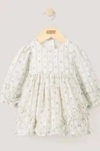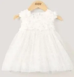 - فستان مزين بزهور بارزة باللون الأبيض يتوفر بسعر 199 ريالًا