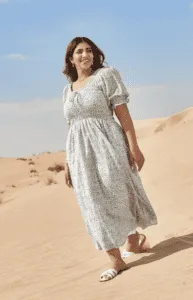 فستان ميدي بخصر مكشكش