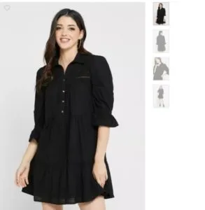 - من أكثر موديلات الفساتين القصيرة مبيعا في الآونة الأخيرة هو موديل فيروا موضة بالأزرار والتصميم المكشكش