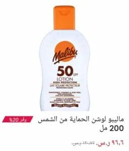 • ماليبو لوشن الحماية من أشعة الشمس الضارة بحجم 200 مل خصم 20%
