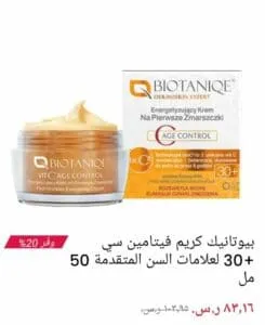 • بيوتانيك كريم يشتمل على فيتامين سي للنساء من سن 30 عام لمحاربة