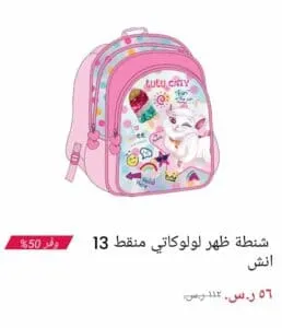 - مناسبة للبنات حجمها هو 13 انش تأتي بخصم 50% تشتمل على رسمة