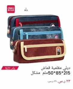 - لتخزين الأدوات الدراسية وسهولة حملها بحجم 215 في 85 في 50 ملم، بسعر 23 ريال سعودي.